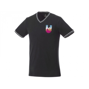 Мужская футболка Elbert с коротким рукавом. Воротник гладкой вязкой в рубчик. Манжеты гладкой вязкой в рубчик. Контрастные окантовки.V-образная горловина. Двойная строчка на воротнике и внизу изделия. Комфортный ярлык-трансфер на изделии. Трикотажное пике, 100% хлопок. 180 г/м².