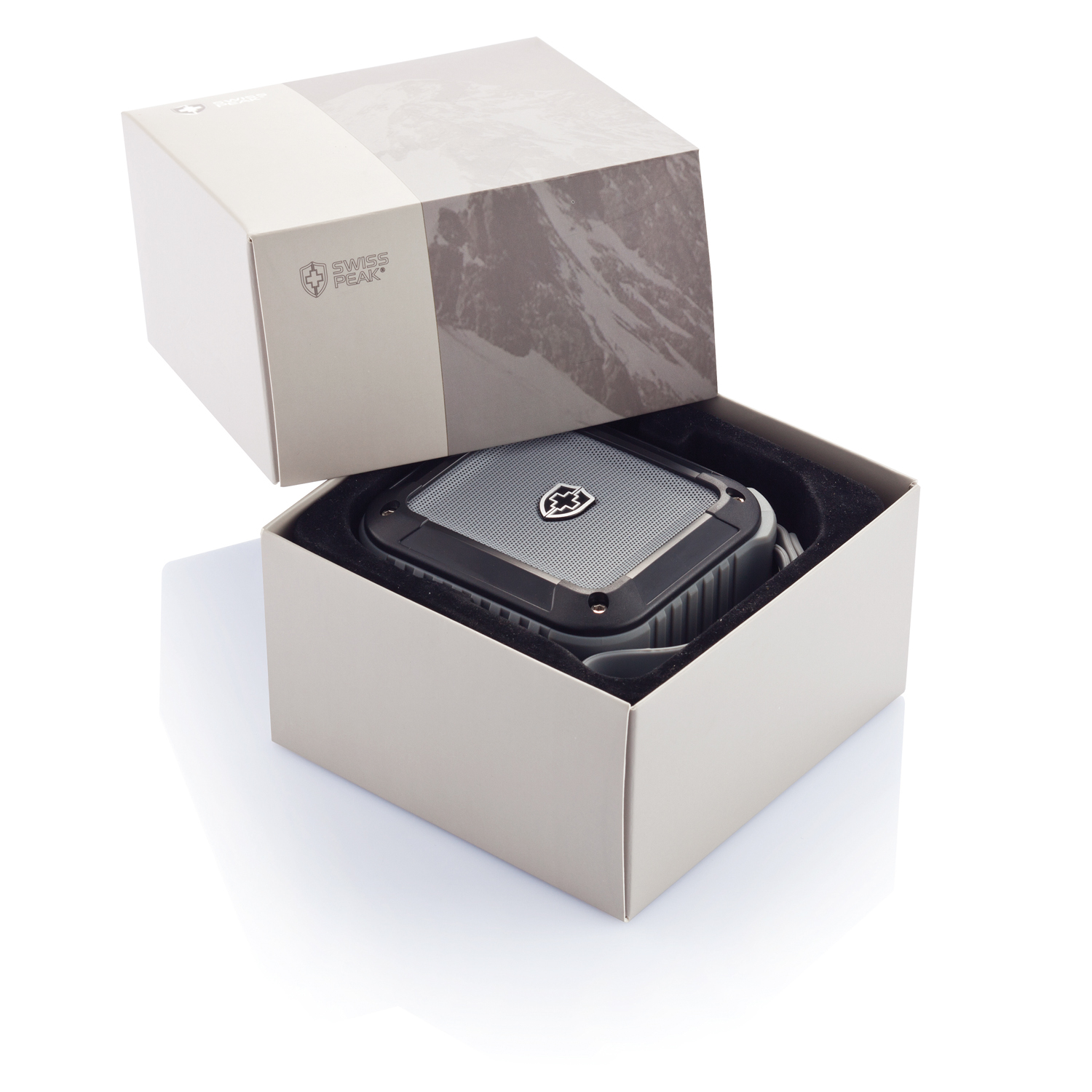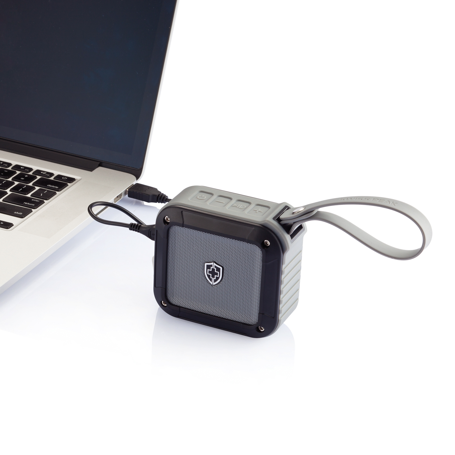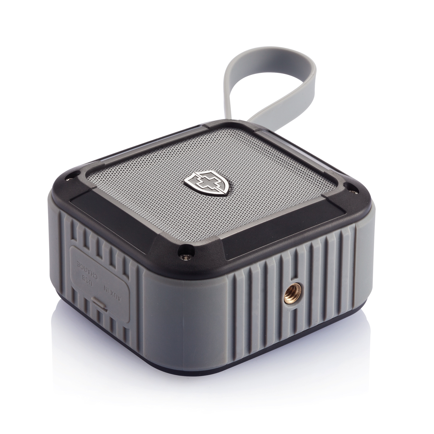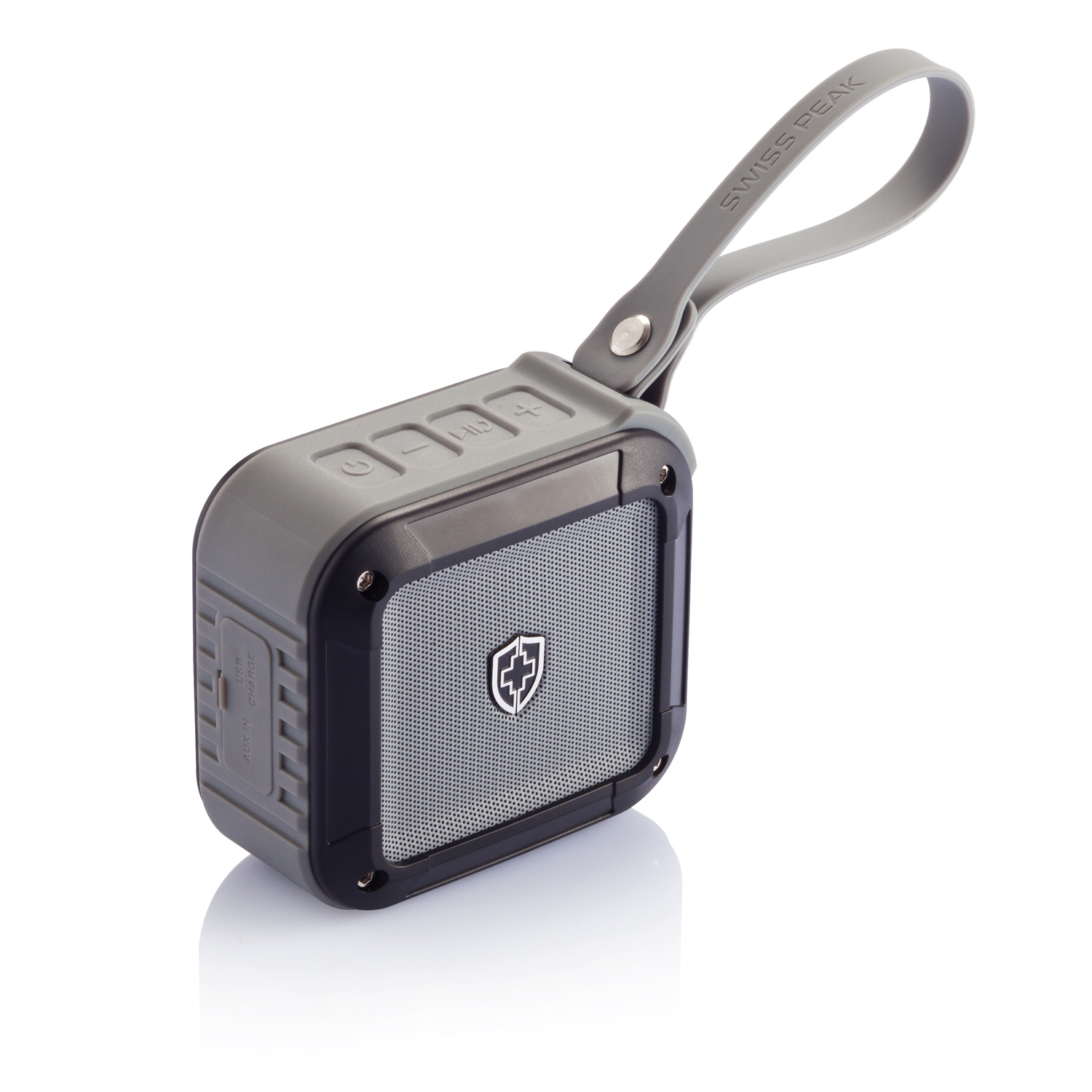 Беспроводная колонка Swiss Peak с динамиком мощностью 5W и встроенным аккумулятором емкостью 1500 мАч надежно защищена от влаги и пыли (уровень защиты IPX5). Она позволит вам наслаждаться музыкой без подзарядки до 10 часов. В комплекте поставляется силиконовый ремешок, благодаря которому вы сможете повесить колонку в любом удобном месте.