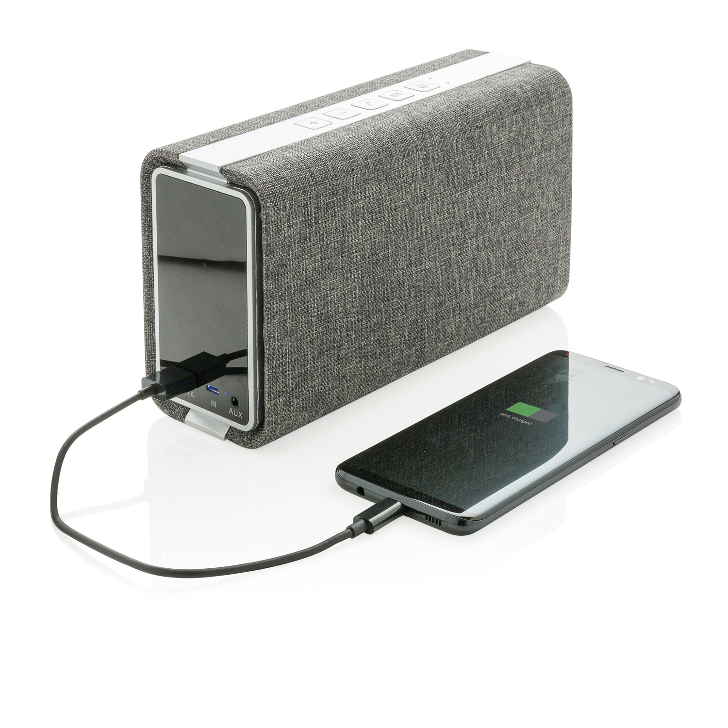 Колонка Vogue мощностью 6W объединяет в себе две самые важные для современного человека функции: возможность слушать любимую музыку и заряжать мобильные устройства, где бы вы ни находились. Трендовый тканевый корпус колонки впишется в любой интерьер и гармонично дополнит ваш стиль дома, на работе или на отдыхе. BT 3.0 обеспечит отличное соединение на расстоянии до 10 м. Также в колонке предусмотрен микрофон, позволяющий отвечать через нее на звонки. Одного заряда встроенного аккумулятора емкостью 4000мАч хватит, чтобы дважды подзарядить мобильный телефон (может варьироваться в зависимости от модели) или слушать музыку в течение 10 часов. Напряжение как на входе, так и на выходе составляет 5V/1A. Зарегистрированный дизайн®