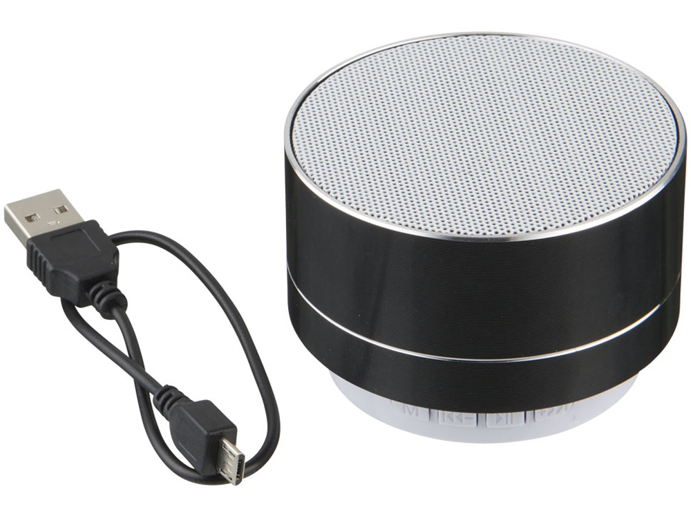 Цилиндрический динамик Bluetooth®. Металлический цилиндрический динамик. Динамик 4.2 Bluetooth с перезаряжаемым аккумулятором емкостью 300 мАч. Время воспроизведения составляет 2 часа при максимальной громкости. Для зарядки динамика от 0% до 100% требуется 2-3 часа. Предлагаются в коробке Avenue. Алюминий.