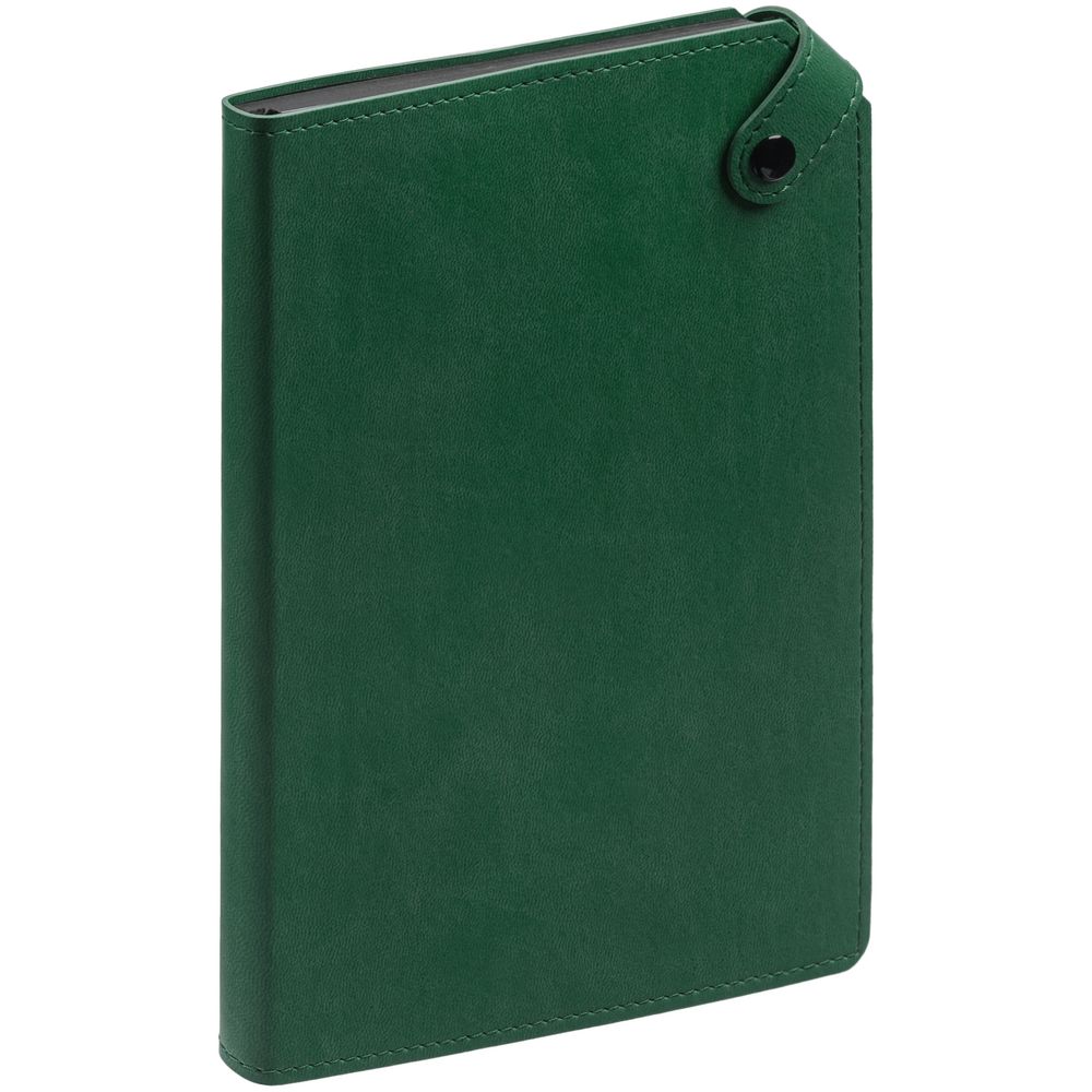 Ежедневник с гибкой обложкой и тонированным обрезом. Выполнен из материала Latte, зеленый FF, дополнен черным ляссе.