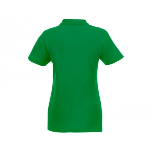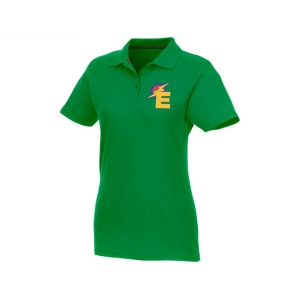 Женское поло Helios с коротким рукавом. Женская модель с разрезами по бокам. Отрезной-отрывной ярлык для комфорта. Воротник гладкой вязкой в рубчик. Планка с тремя пуговицами. Двойная строчка на воротнике и внизу изделия. Пуговицы в цвет изделия. Полоска на горловине в контрастном цвете. Трикотаж Piqué, 100 % хлопок. 180 г/м².