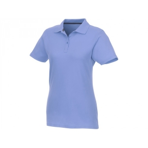 Женское поло Helios с коротким рукавом. Женская модель с разрезами по бокам. Отрезной-отрывной ярлык для комфорта. Воротник гладкой вязкой в рубчик. Планка с тремя пуговицами. Двойная строчка на воротнике и внизу изделия. Пуговицы в цвет изделия. Полоска на горловине в контрастном цвете. Трикотаж Piqué, 100 % хлопок. 180 г/м².