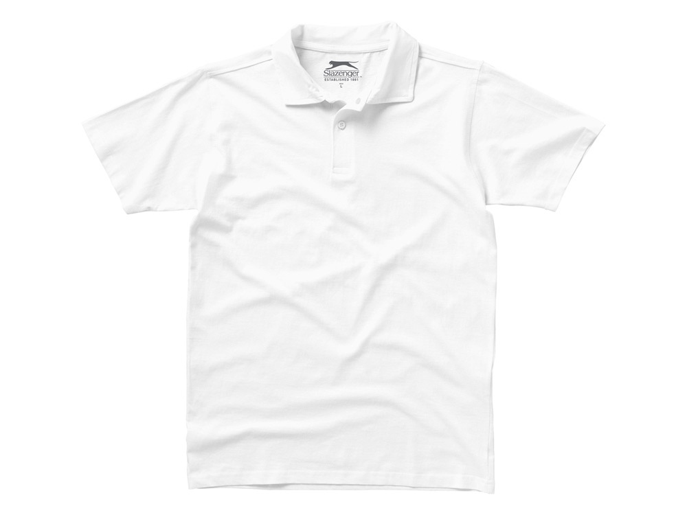 Рубашка поло с короткими рукавами Let. Прилегающий покрой. Воротник из ткани изделия. Пуговицы с гравировкой. Плоская строчка на пройме. Обшивка внутри воротника. Принт Slazenger сзади. Однослойная джерси, 100% хлопок. 180 г/м². Трафаретная печать (1 цвет (белые изделия)) на данный товар осуществляется бесплатно. Оплачивается только настройка оборудования в размере 4200 рублей на весь тираж.