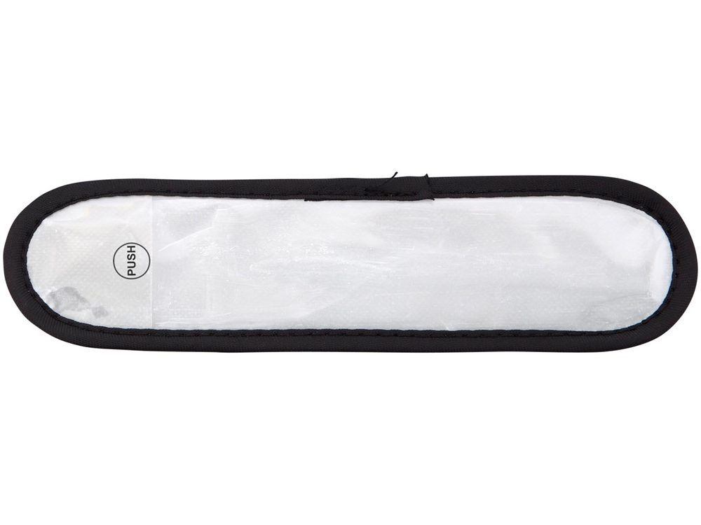 Диодный браслет Olymp. Регулируемый эластичный диодный браслет для видимости на улице с кнопкой для переключения режимов мигания, быстрого мигания, обычного света или выключения. Батарейки в комплекте. ПВХ.
