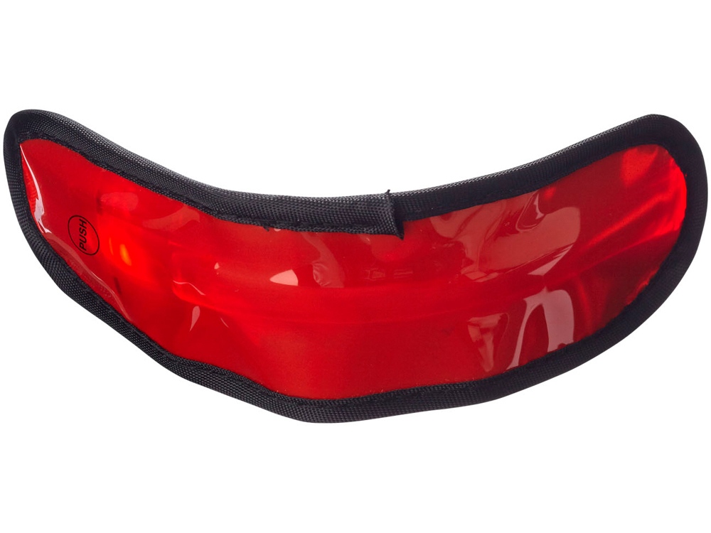 Диодный браслет Olymp. Регулируемый эластичный диодный браслет для видимости на улице с кнопкой для переключения режимов мигания, быстрого мигания, обычного света или выключения. Батарейки в комплекте. ПВХ.