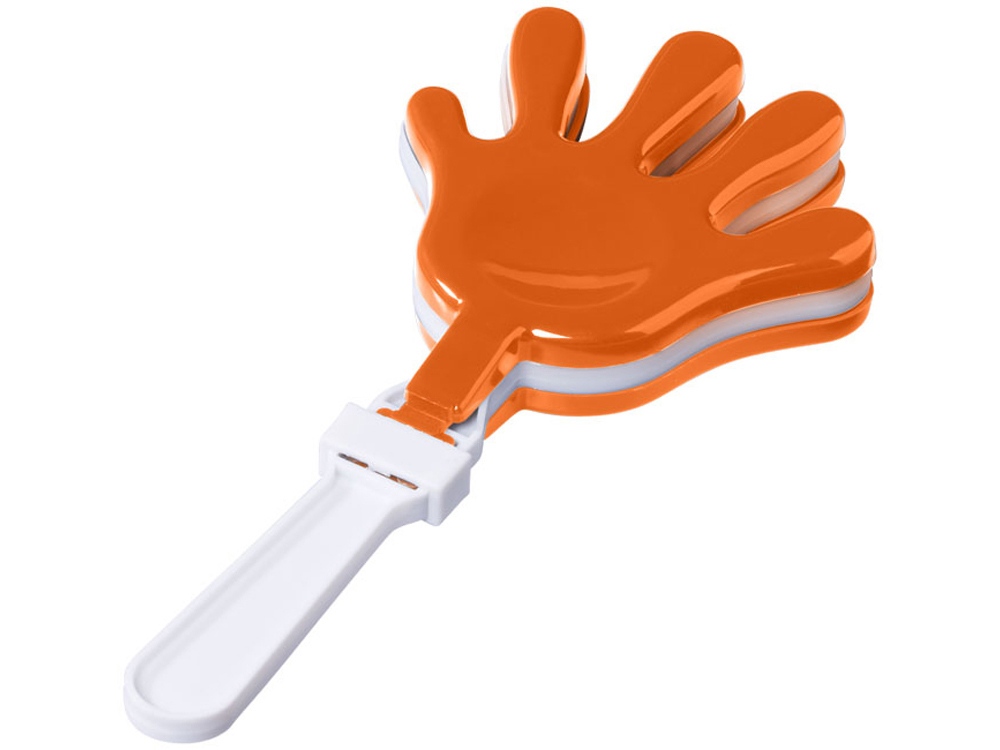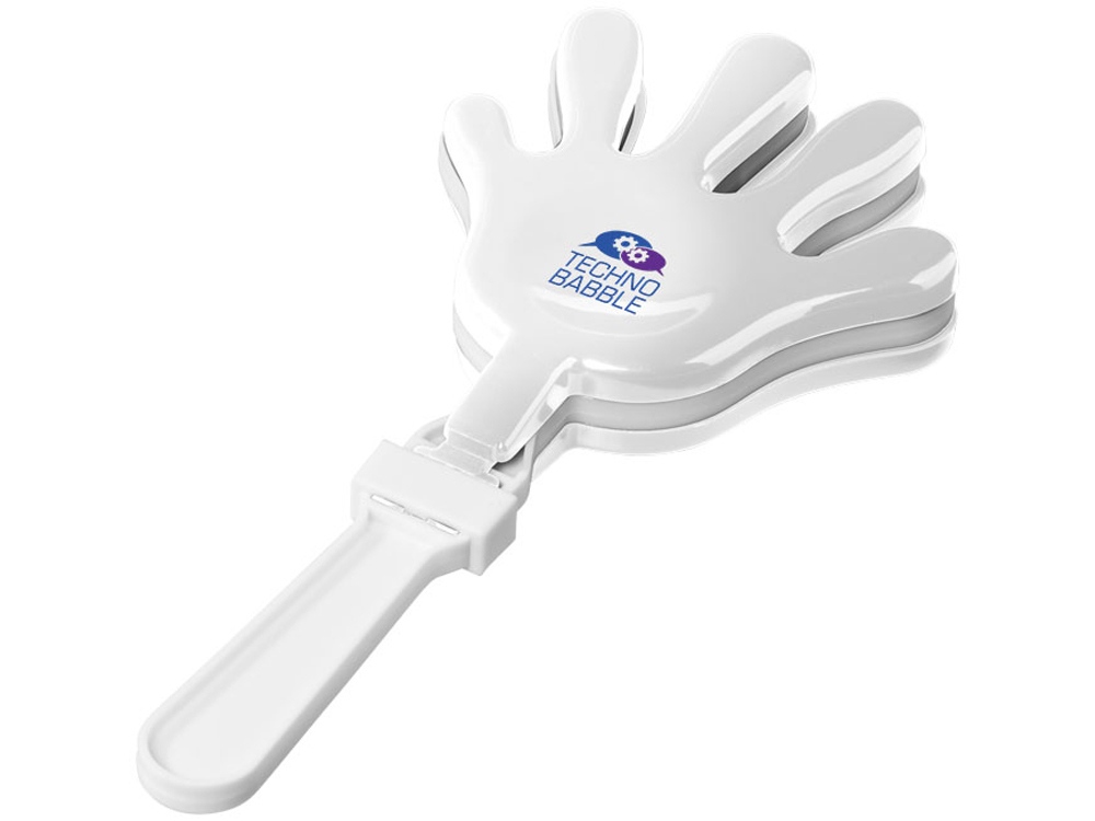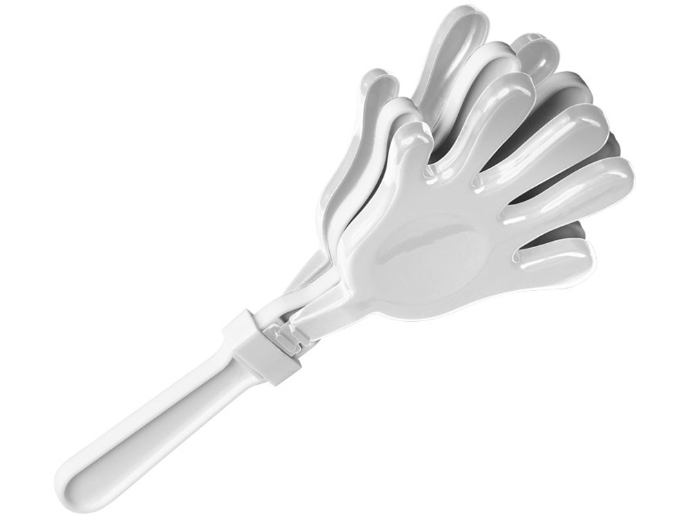 Хлопалка High-Five. Хлопалка в виде ладошки в двух тонах, для аплодисментов и создания шума. ПП пластик. Тампопечать (1 цвет (белые изделия)) на данный товар осуществляется бесплатно. Оплачивается только настройка оборудования в размере 2900 рублей на весь тираж.