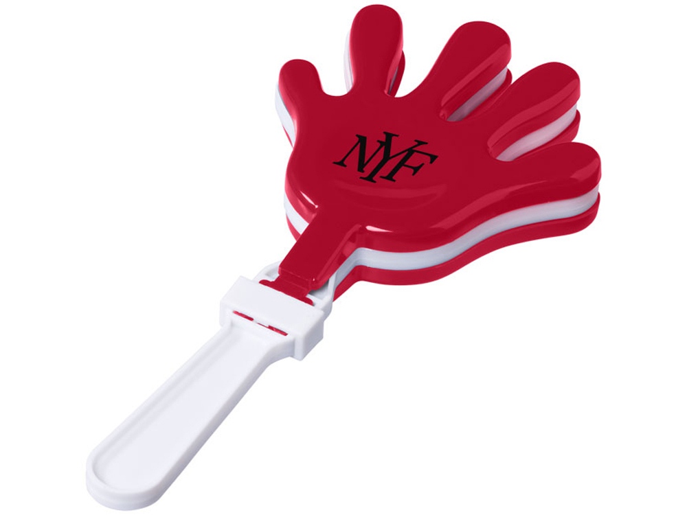 Хлопалка High-Five. Хлопалка в виде ладошки в двух тонах, для аплодисментов и создания шума. ПП пластик. Тампопечать (1 цвет (цветные изделия)) на данный товар осуществляется бесплатно. Оплачивается только настройка оборудования в размере 2900 рублей на весь тираж.