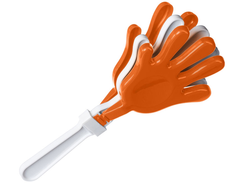 Хлопалка High-Five. Хлопалка в виде ладошки в двух тонах, для аплодисментов и создания шума. ПП пластик. Тампопечать (1 цвет (цветные изделия)) на данный товар осуществляется бесплатно. Оплачивается только настройка оборудования в размере 2900 рублей на весь тираж.