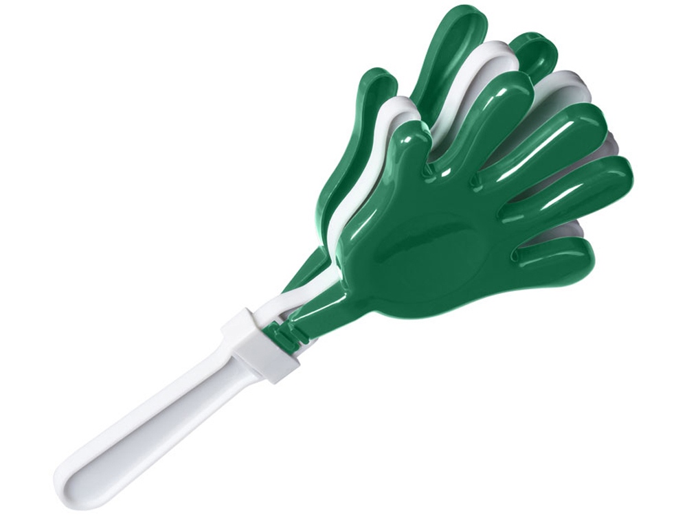 Хлопалка High-Five. Хлопалка в виде ладошки в двух тонах, для аплодисментов и создания шума. ПП пластик. Тампопечать (1 цвет (цветные изделия)) на данный товар осуществляется бесплатно. Оплачивается только настройка оборудования в размере 2900 рублей на весь тираж.