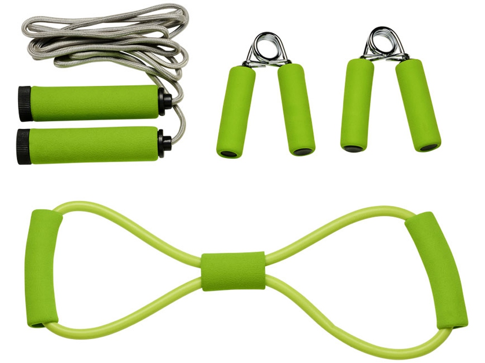Комплектность: кистевой эспандер - 2шт, скакалка, грудной эспандер.