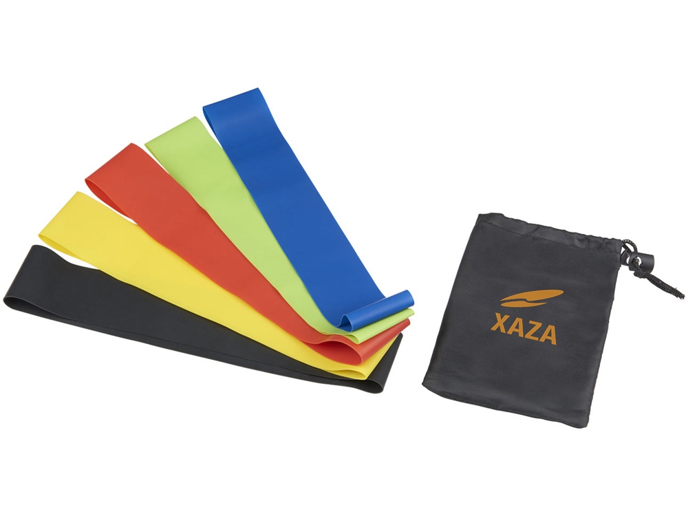 Набор спортивных резинок Crane. Набор из пяти резинок высокой плотности с большим сопротивлением (60х5 см) различной силы. Каждая из резинок предоставляет определенную растяжку для работы над мышцами, увеличения силы и тонуса тела. Широко используется во всех видах упражнений. В комплекте чехол, который можно использовать для нанесения. Нейлон и латекс. Силовая нагрузка фитнес-резинок отличается в зависимости от цвета: Зеленый- 4,5 кг. Синий- 5,4 кг. Желтый- 7,2 кг. Красный- 8,2 кг. Черный- 9,1 кг. Термотрансфер (1 цвет (цветные изделия)) на данный товар осуществляется бесплатно. Оплачивается только настройка оборудования в размере 7300 рублей на весь тираж.