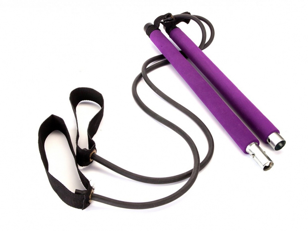 Палка гимнастическая с эспандерами Pilates Studio, черный/фиолетовый