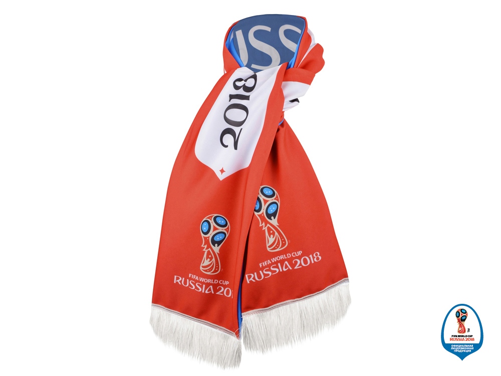 Шарф 2018 FIFA World Cup Russia™ изготовлен из трикотажного материала. На изделии изображен логотип 2018 FIFA World Cup Russia™. Шарф - это один из главных элементов экипировки любого болельщика. Такой атрибут покажет вашу любовь и причастность к своей команде. Также этот шарф можно использовать не только на арене, но и в повседневной жизни. Отправляйтесь на вместе с ним матч и поддержите российскую сборную на Чемпионате мира по футболу 2018 FIFA World Cup Russia™! © FIFA/ФИФА, логотипы официальной лицензионной продукции FIFA, а также эмблемы, талисманы, плакаты и кубки Чемпионата мира по футболу FIFA™ являются объектами авторского права и/или товарными знаками FIFA.