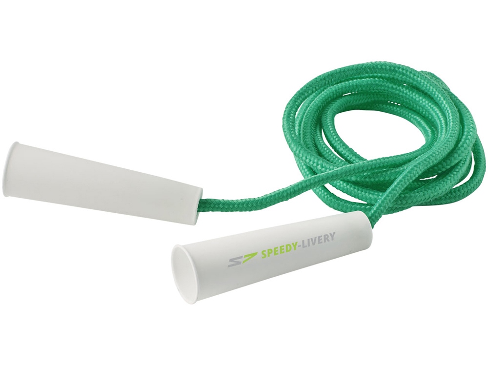 Скакалка Rico. Скакалка длиной 2 метра с белыми пластиковыми ручками для нанесения. Соответствует норме EN71. Полиэстер и пластик. Тампопечать (1 цвет (белые изделия)) на данный товар осуществляется бесплатно. Оплачивается только настройка оборудования в размере 2900 рублей на весь тираж.