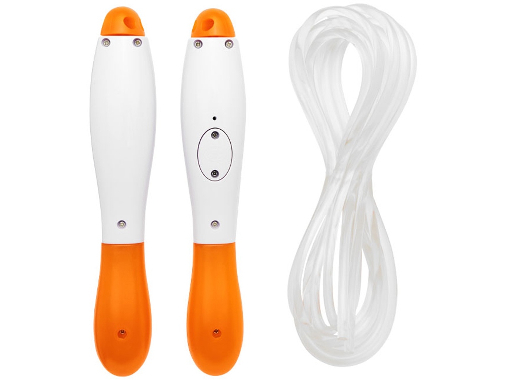 Скакалка со счетчиком. Скакалка измеряет количество прыжков и сожженные калории. 3-метровая скакалка легко регулируется по вашему росту. Батарейки входят в комплект. АБС-пластик. 0,154.