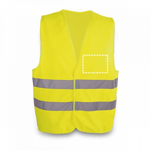Светоотражающий жилет высокой видимости из 100% полиэстера. Содержит 2 горизонтальные светоотражающие полосы и открывается спереди липучкой. Один размер: 670 x 700 мм. Вид нанесения, рекомендуемый поставщиком: трансфер, текстильный принтер